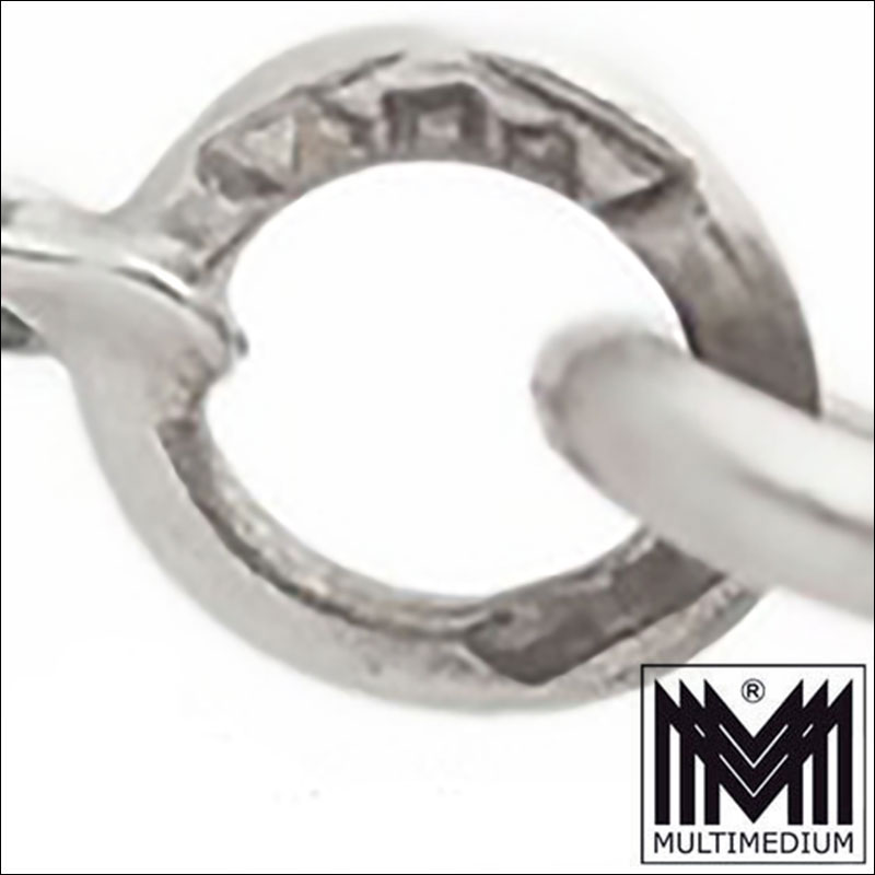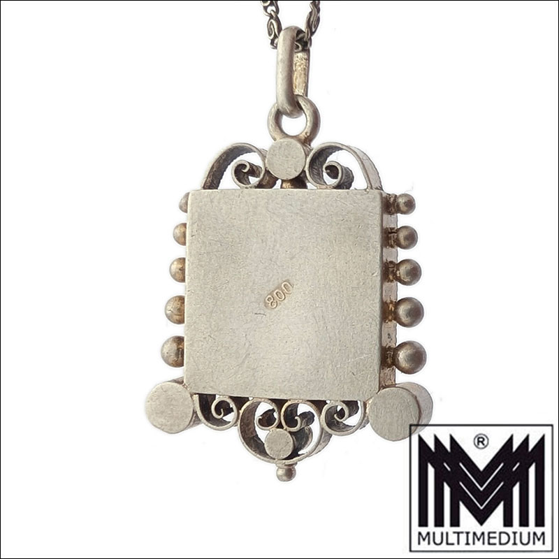 The pendant is accompanied by a matching antique flat curb chain (also stamped 800 silver). This type of chain is characterized by its particularly flat and comfortable fit against the skin. Despite its delicate appearance, it is very sturdy due to its curb link construction.