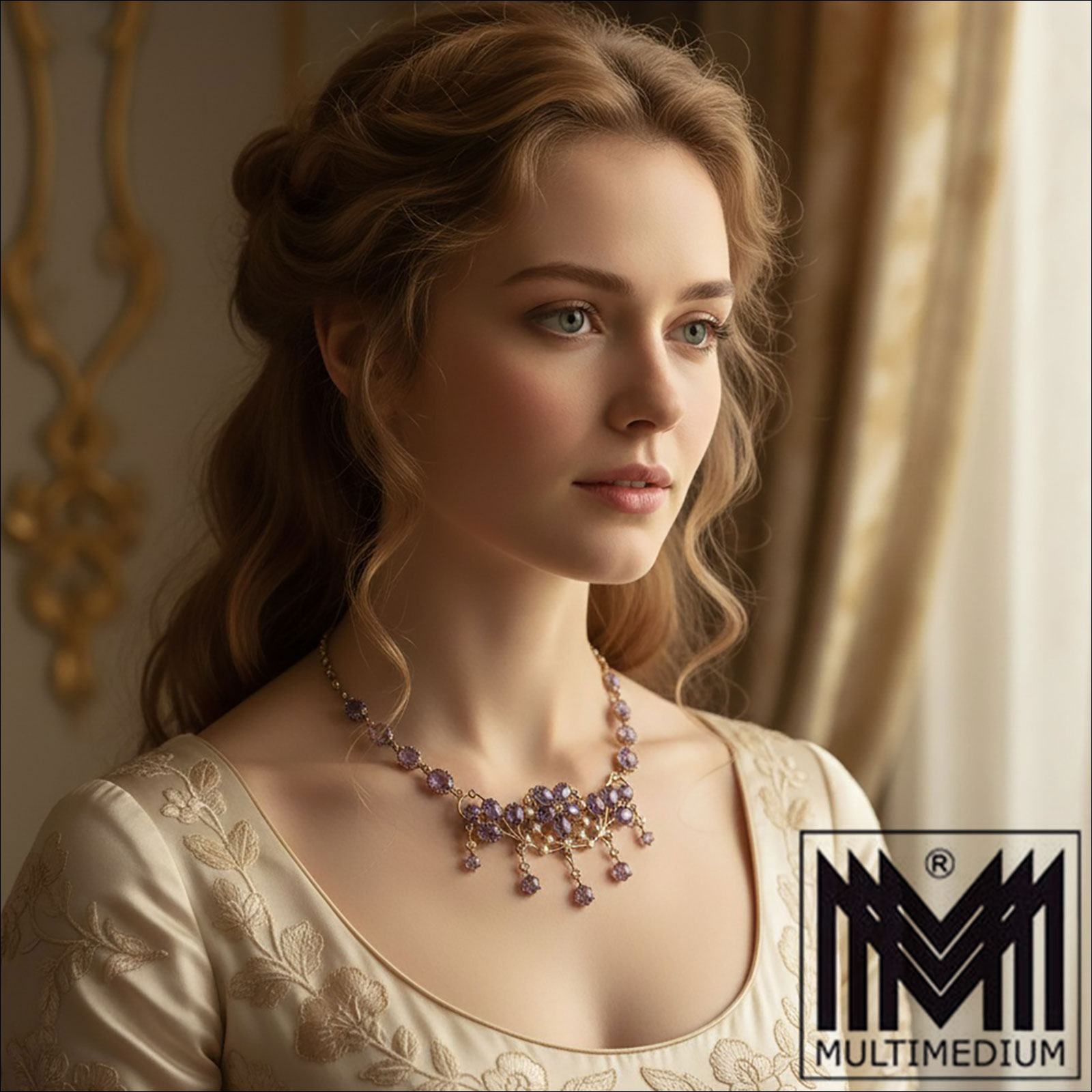 Silver gold-plated Art Nouveau amethyst necklace,