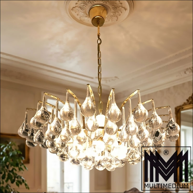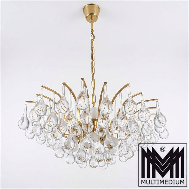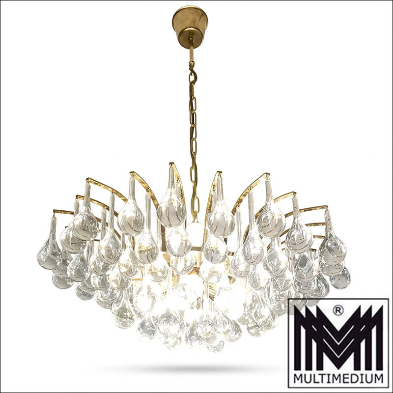 Christoph Palme ceiling lamp gold plated glass drops 70s