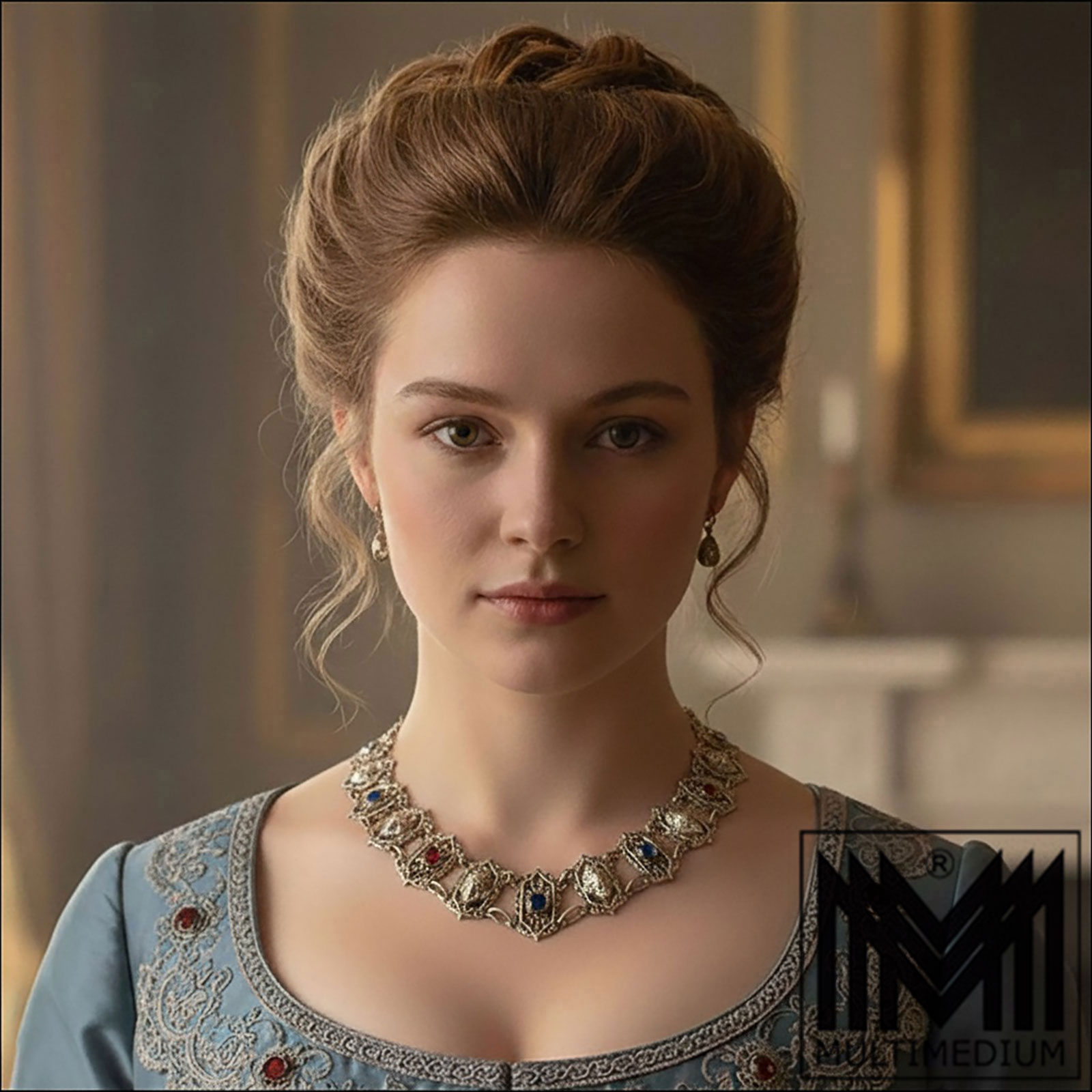 with garnet paste and sapphire paste cabochons around 1870,