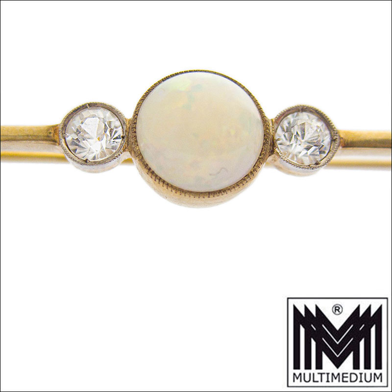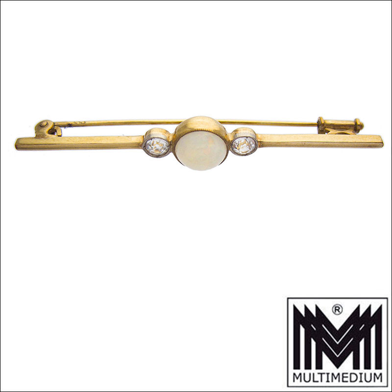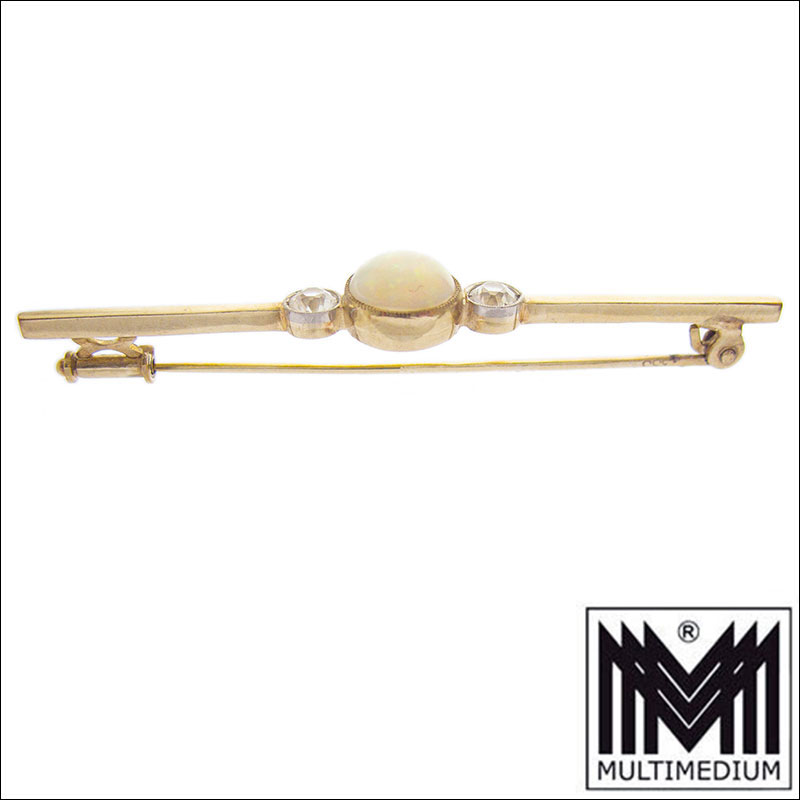 Jugendstil 333 Gold Opal Brosche weiße Saphire art nouveau brooch c.1910