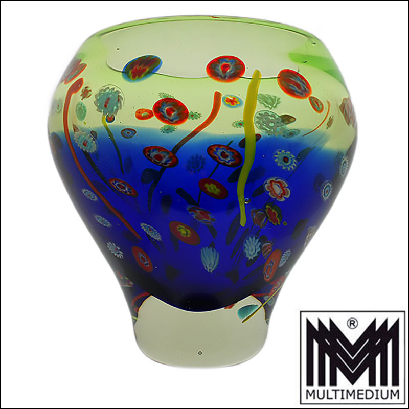 Heavy AvEM Murano Glass Vase Millefiori Murines Blue Green glass