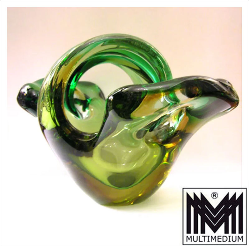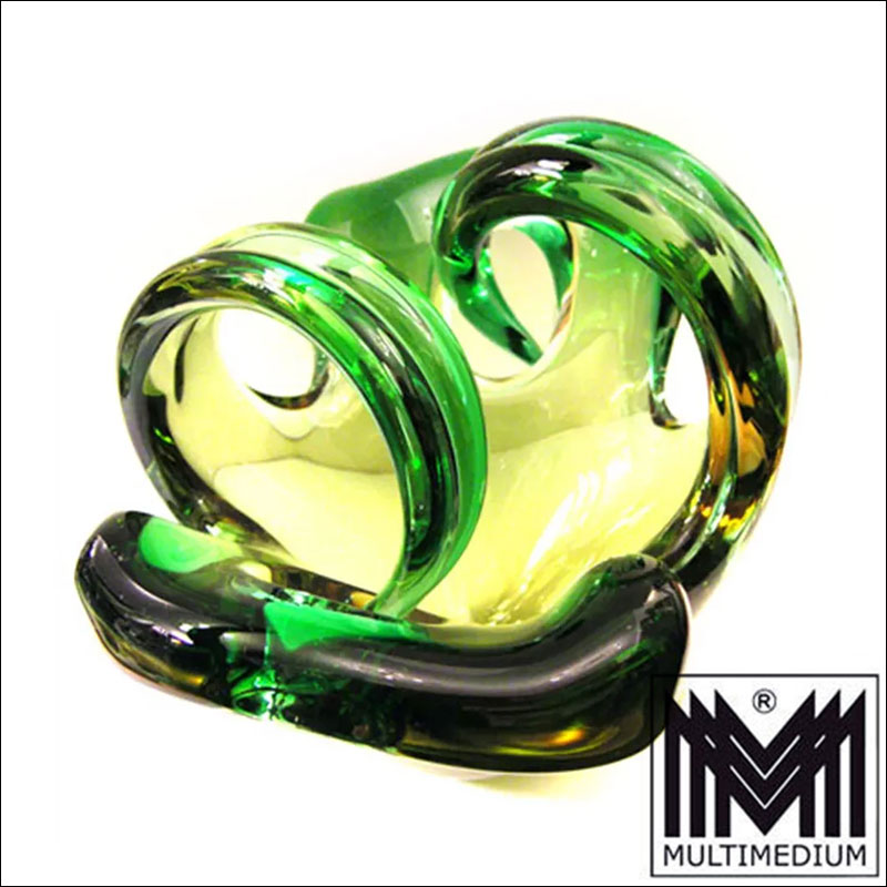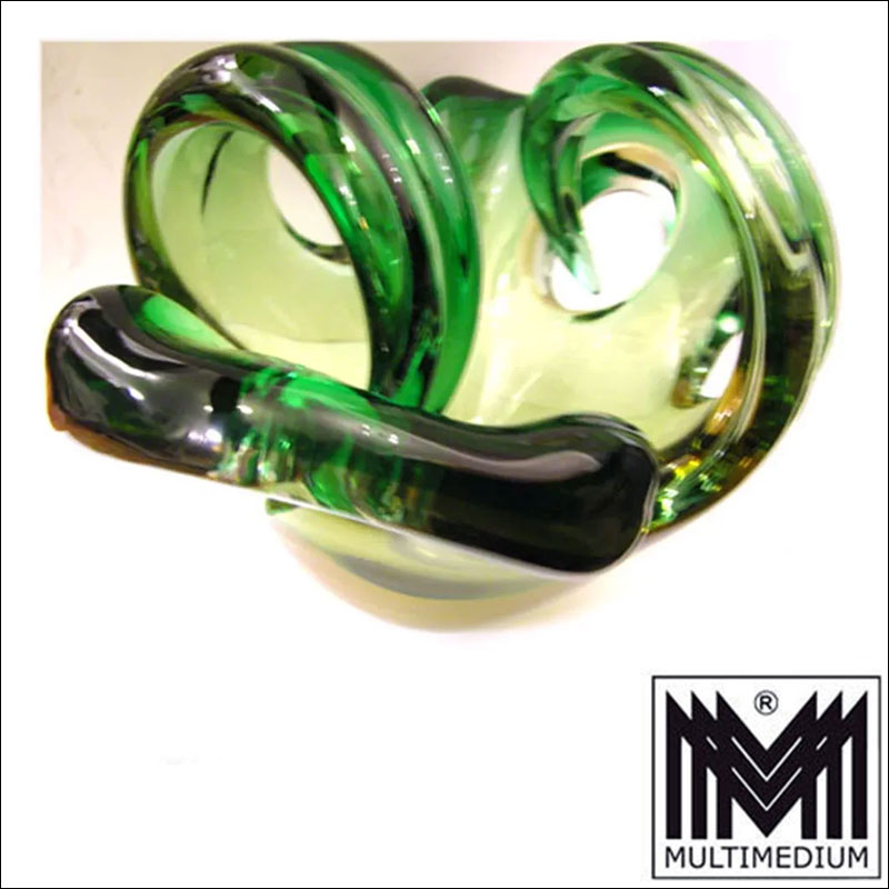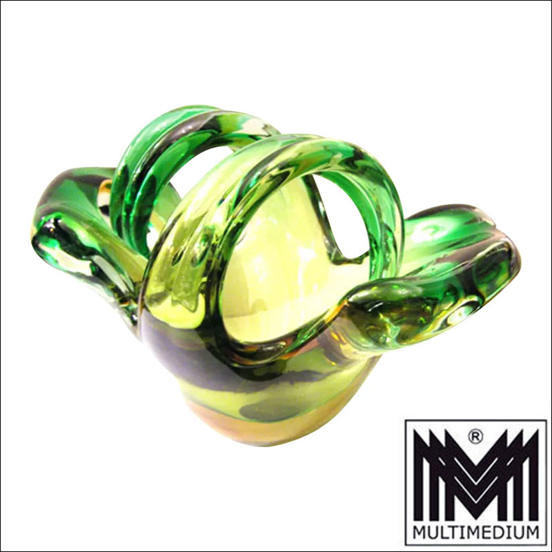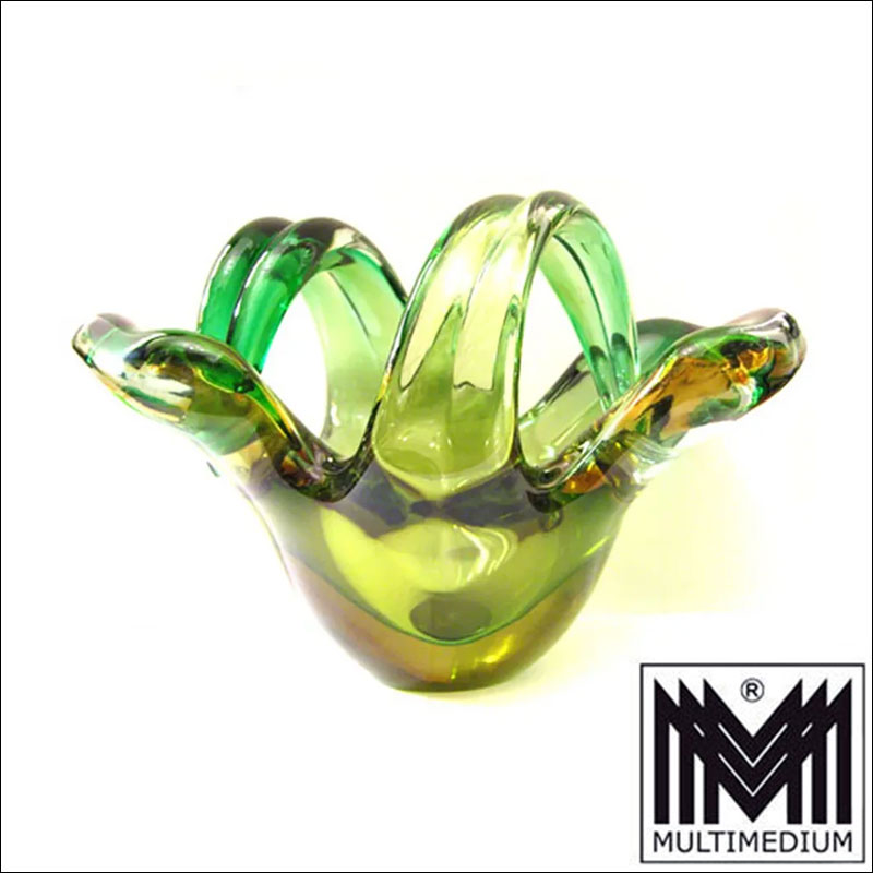 Rare heavy Murano Bowl 50s / 60s green yellow thick-walled Glass
