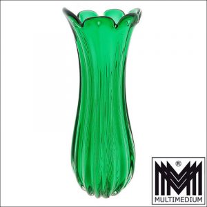 Murano Glas Vase Archimede Seguso Barovier & Toso Italy Grün ribbed