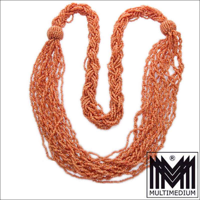 Originale antike Art Deco Korallen Halskette Collier Handarbeit gefochten selten